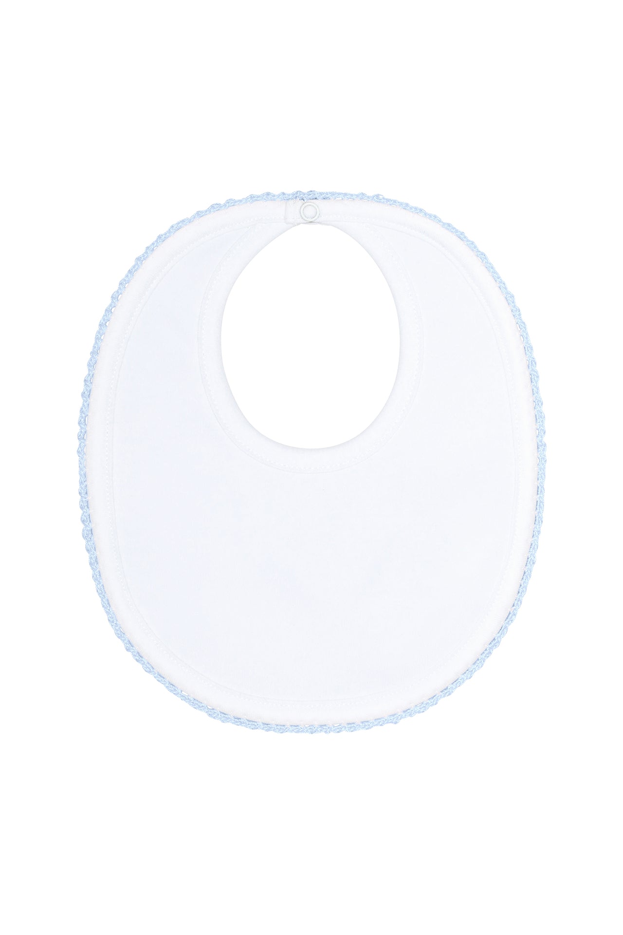 Elevate your baby's mealtime with our Crochet Blue Baby Bib, crafted from the finest pristine white Pima cotton. This bib offers exceptional softness and durability, ensuring it remains gentle on your baby's delicate skin while standing up to daily use, and the handmade crochet trim around the edges enhances its overall appeal