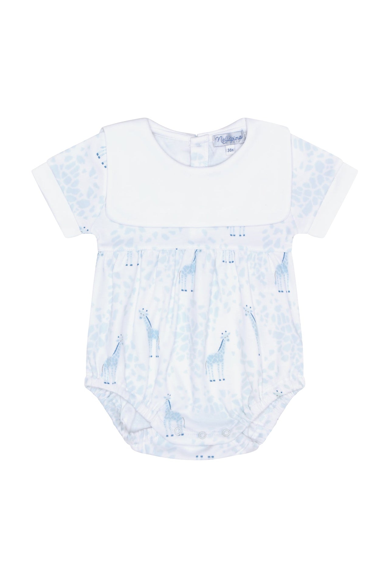 Our 100% Pima Cotton Blue Giraffe Print Smocked Bubble is designed to bring a touch of sweetness, charm, and friendliness to your baby's wardrobe. Available in sizes ranging from 0 to 18 months, this smocked bubble is crafted with love and care to ensure utmost comfort and irresistible style.