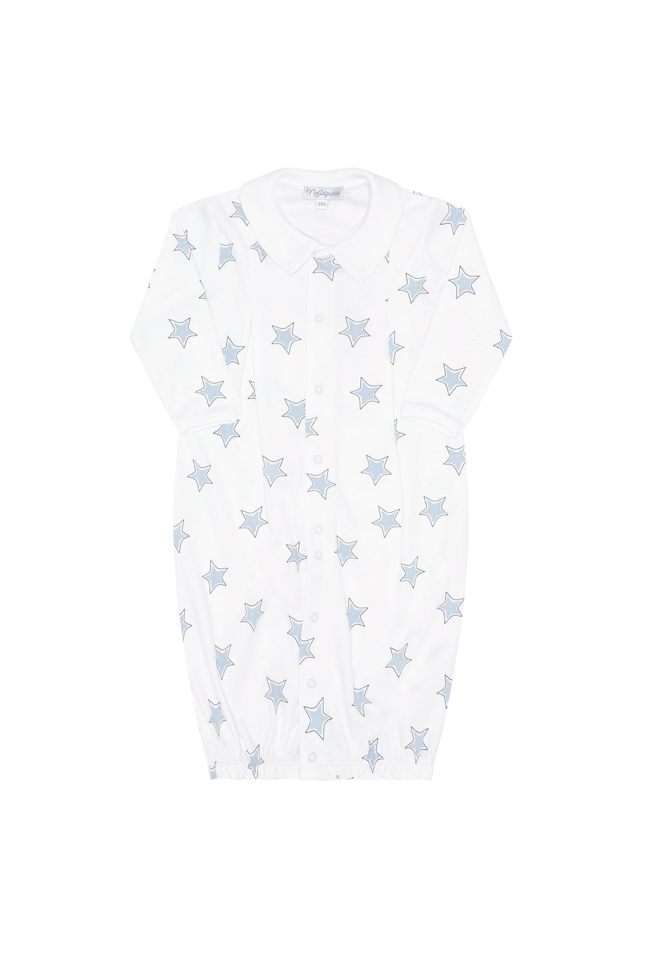 Our Stars Print Converter Gown, designed with an envelope neck in pristine white and adorned with stars-shaped designs printed all over. Crafted from 100% Pima cotton, this gown is not only stretchy but also feels incredibly soft on your baby's delicate skin.