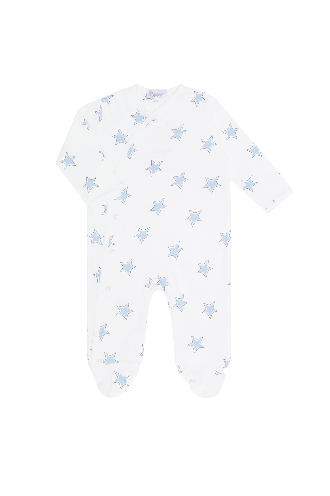 The Blue Stars Print Crossover! This piece is designed for convenience and comfort, with its crossover style making dressing a breeze—no more struggling with pulling things over your baby's head, and the soft and comfortable material ensures your baby will feel cozy all day long.