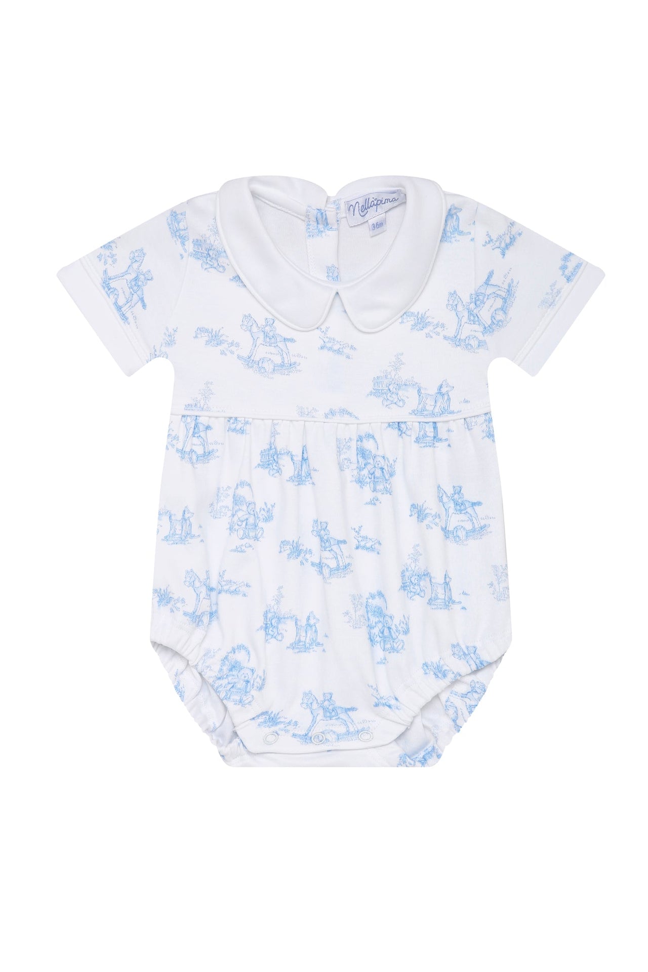 Indulge your precious little one in ultimate comfort with our Blue Toile Baby Bubble. Made from the gentlest Pima Peruvian cotton, this bubble is incredibly soft and gentle against delicate skin. The Blue Picot Trim fabric adds to its durability while snuggly holding your baby and providing the comforting feeling of a mother's embrace.