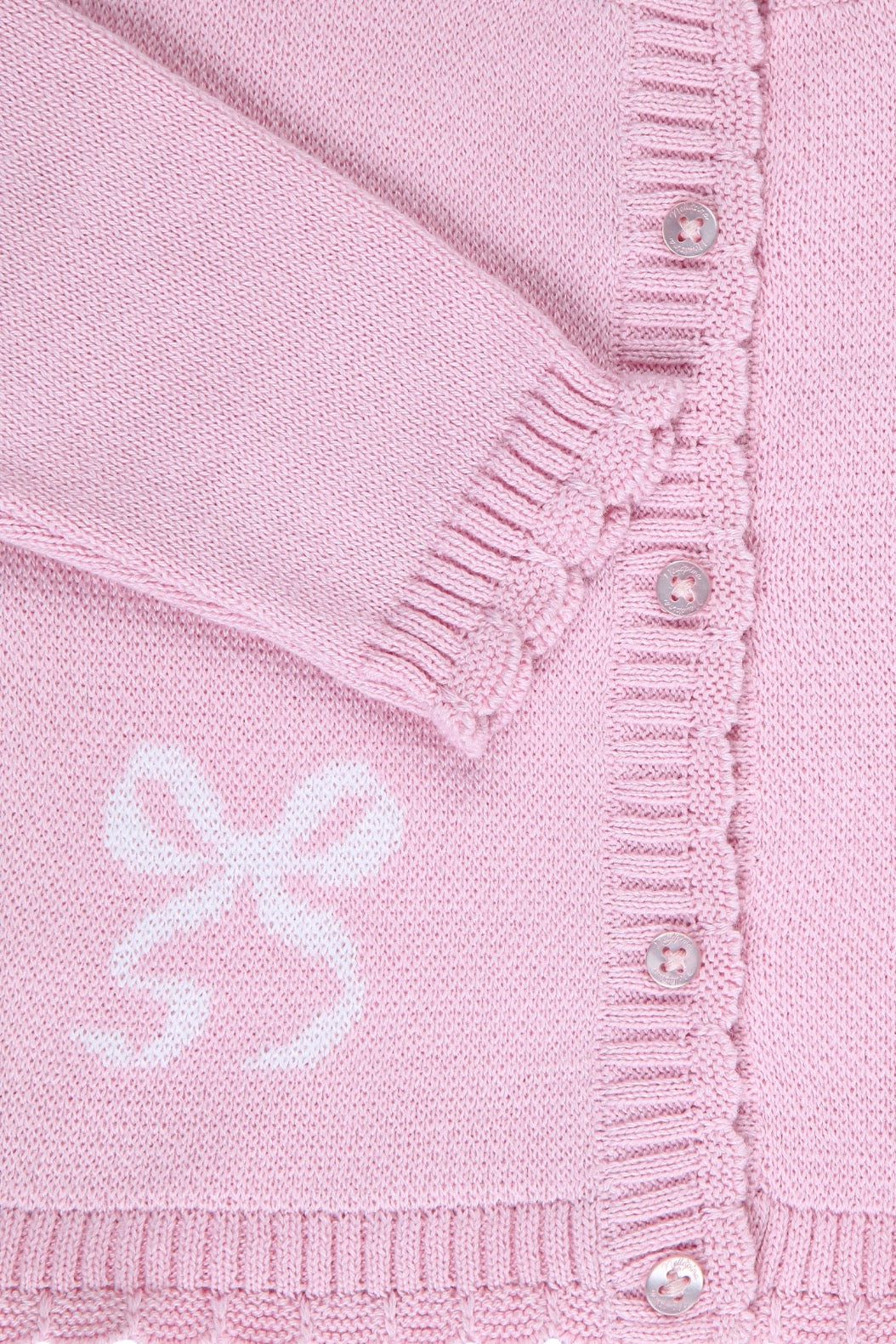 Designed in a classic knit with adorable bow details and refined finishes, this cardigan adds an elegant layer to any outfit. Its lightweight warmth makes it ideal for all seasons, whether worn over a dress, romper, or matching knit set.