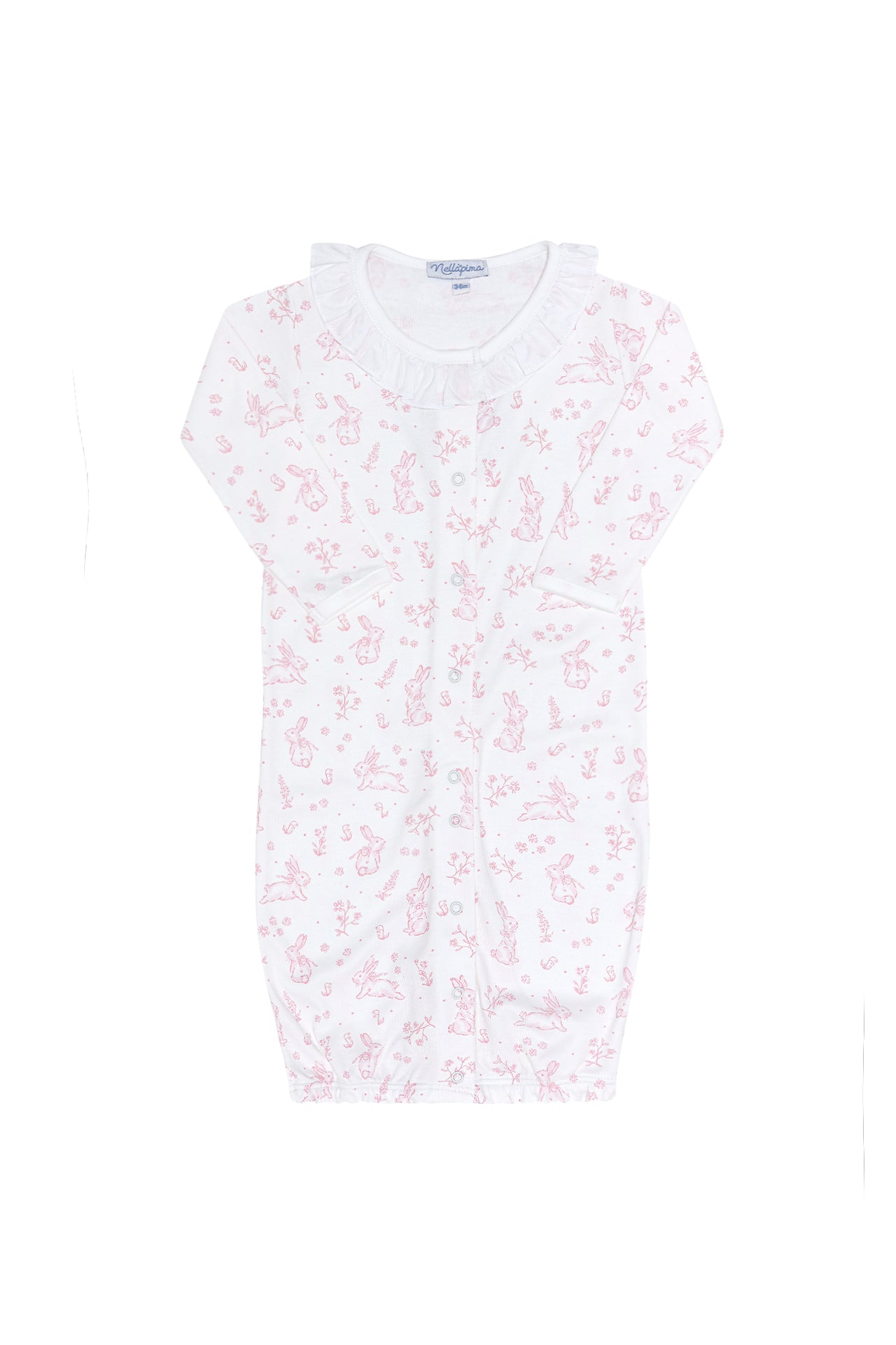 Versatility meets elegance with our Pink Bunny Toile Converter Gown. This beautifully designed gown, made from premium Peruvian Pima cotton, easily transitions from a gown to a romper, offering both comfort and convenience. The soft pink bunny toile design exudes sweetness, making it perfect for nap time, playtime, or outings. With its practical design and exquisite style, it’s a wardrobe essential for your little princess.