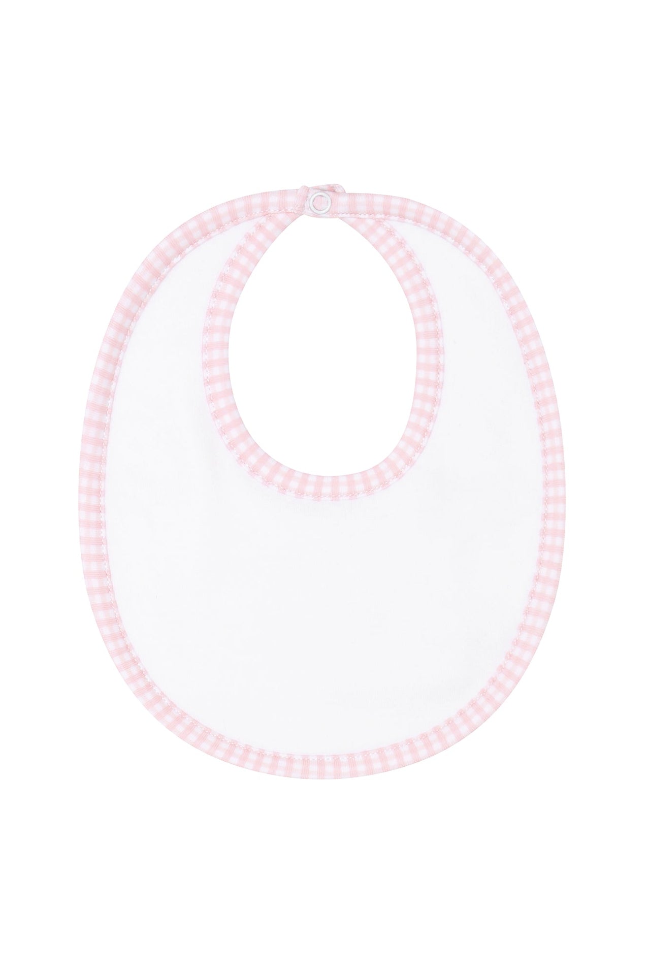 The Pink Gingham Bib is a must-have item to prevent drools and stains. Made from soft and durable 100% Pima cotton, this bib is designed to keep your baby looking stylish while staying clean and dry. It features a charming pink gingham trim and a convenient back closure.