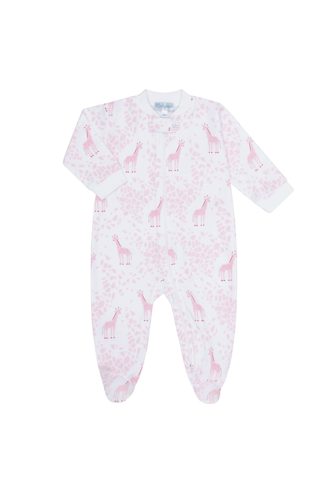 Our Pink Giraffe Print Zipper Footie – a delightful blend of practicality and charm, designed to make dressing your little one an effortless joy. Available in sizes 0 to 12 months, this footie encapsulates the perfect harmony of convenience and cuteness.