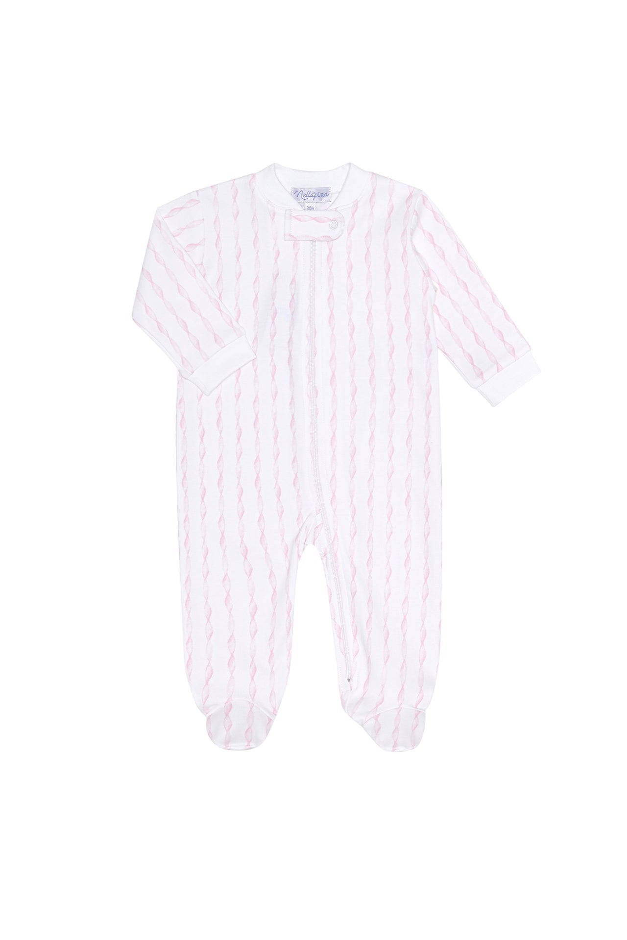 Keep your little one snug and stylish with our Pink Twirl Zipper Footie. Made from the softest 100% Pima cotton, this footie features a charming pink twirl pattern that adds a touch of elegance. The zipper closure makes dressing and diaper changes quick and easy, while the covered feet keep tiny toes warm and cozy.