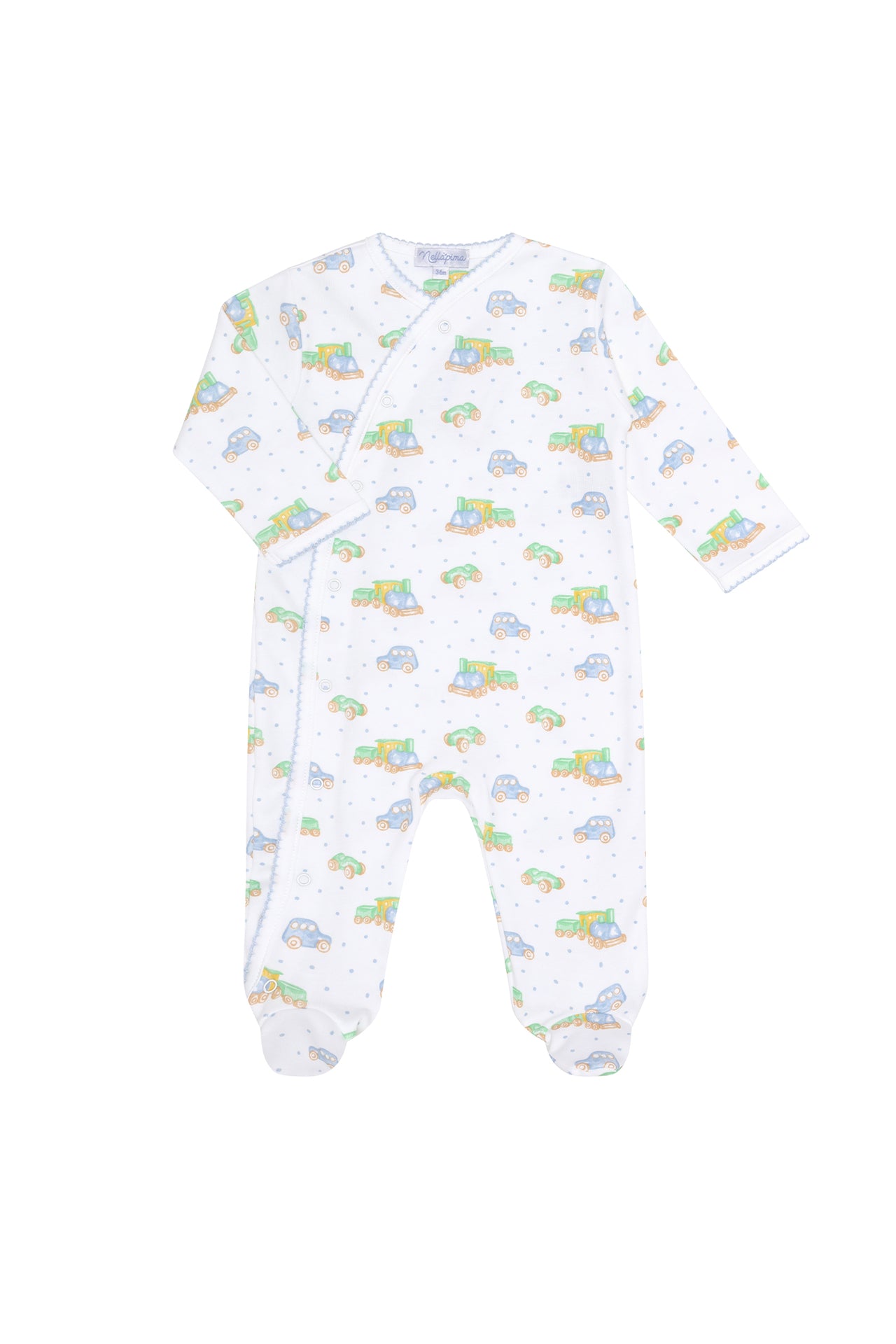 Wrap your little one in comfort and charm with our Wooden Toys Crossover Footie. Made from 100% Peruvian Pima Cotton, this ultra-soft footie features a delicate crossover design for easy dressing and snap closures for convenience. The playful wooden toys print adds a timeless touch, making it perfect for everyday wear or a thoughtful gift. Available in sizes 0-3M to 9M.